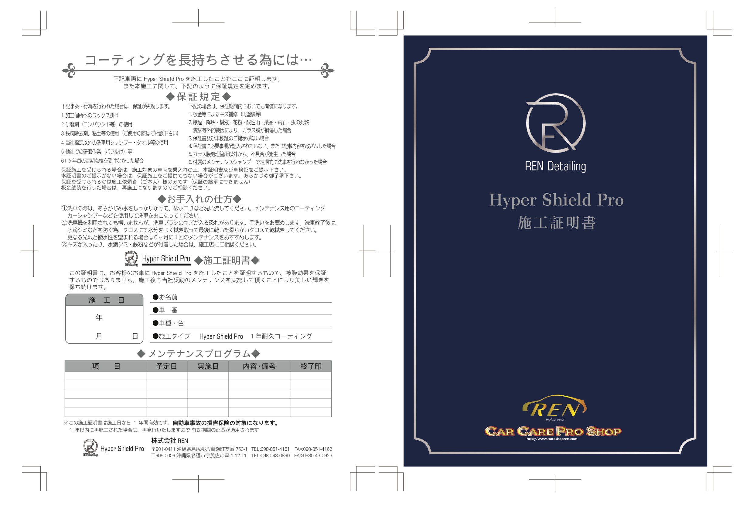 Certificateコーティング施工証明書